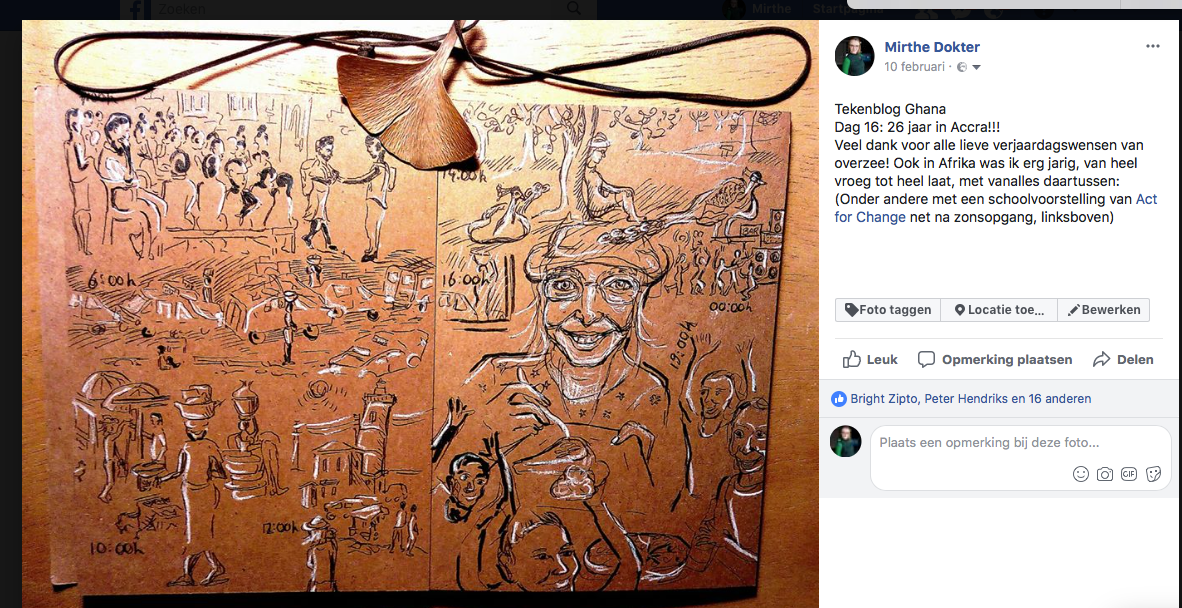 Er is dus nog veel werk te doen. Niet dat mijn aanwezigheid hierin het verschil maakt, maar elke schildpad is er 1. En wat ik kan doen is middels kunst een spreekbuis zijn. Dus film ik, teken ik en ontmoet ik Ghanese betrokkenen door het hele land. Kust en kunst verschilt maar 1 letter. Aankomende woensdag voeg ik me weer bij het team.