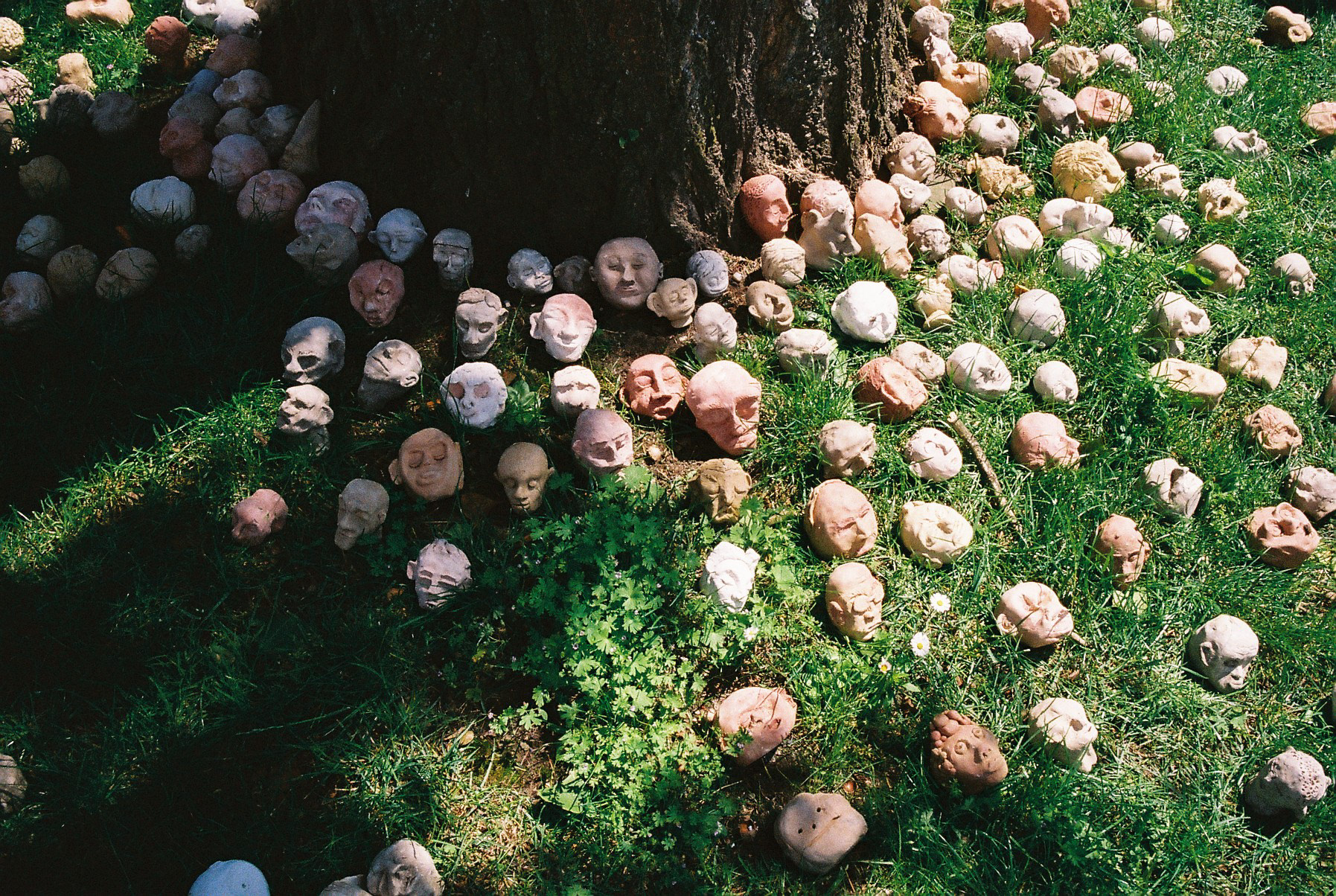 NIEUWS: t/m september 2024 is een groot gedeelte van Het Volk der Introverten haar te vinden op haar laatste rustplaats in Museum Arnhem. Een gedeelte van de ongebakken kleihoofdjes die in Arnhem werden gemaakt zullen hier langzaam verdwijnen, terug de aarde in. Breng ze gerust een laatste groet!