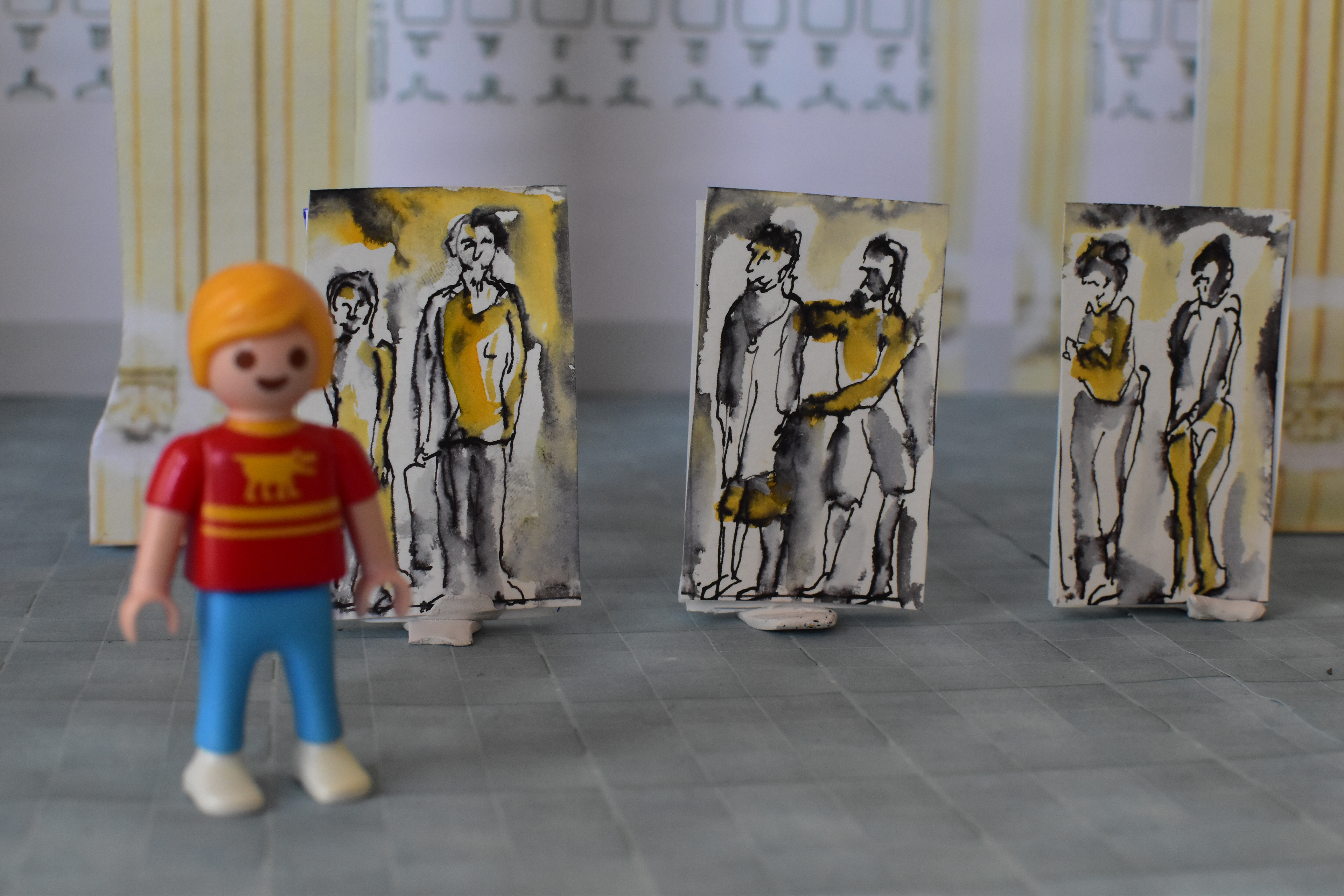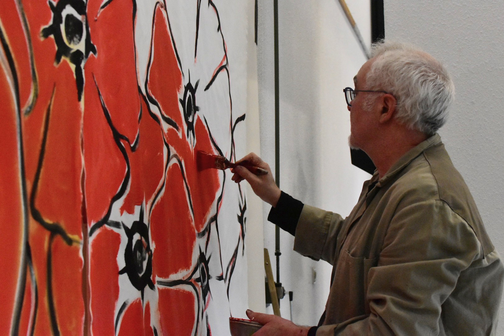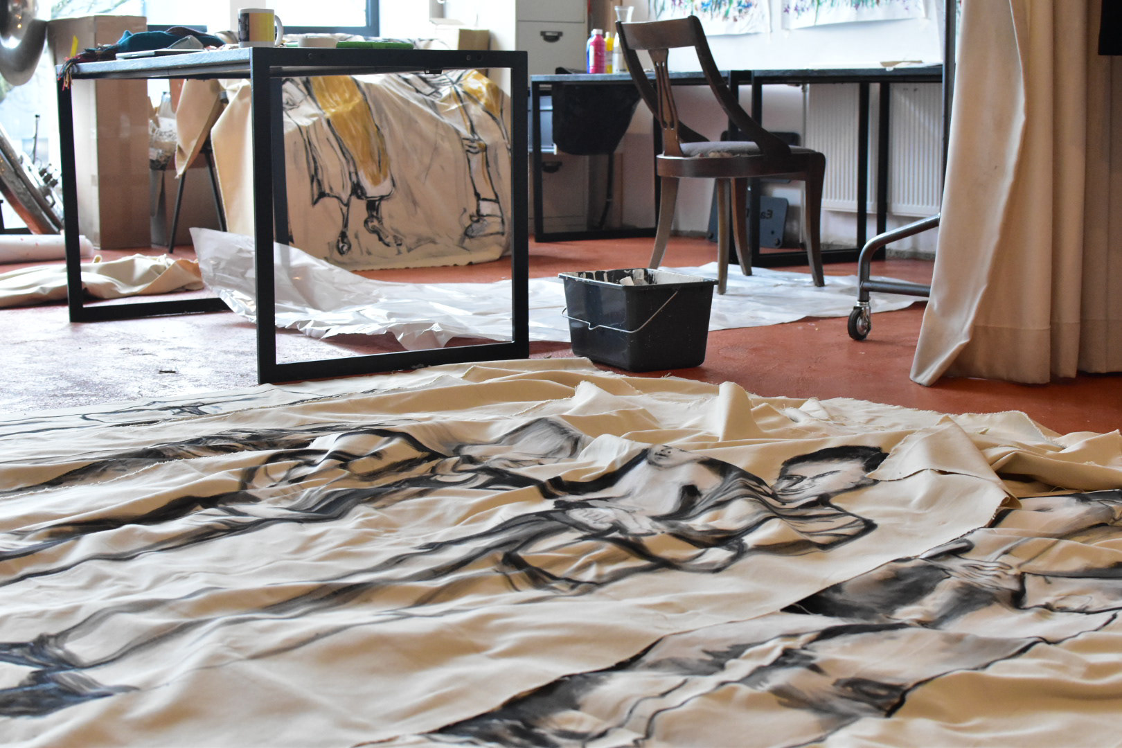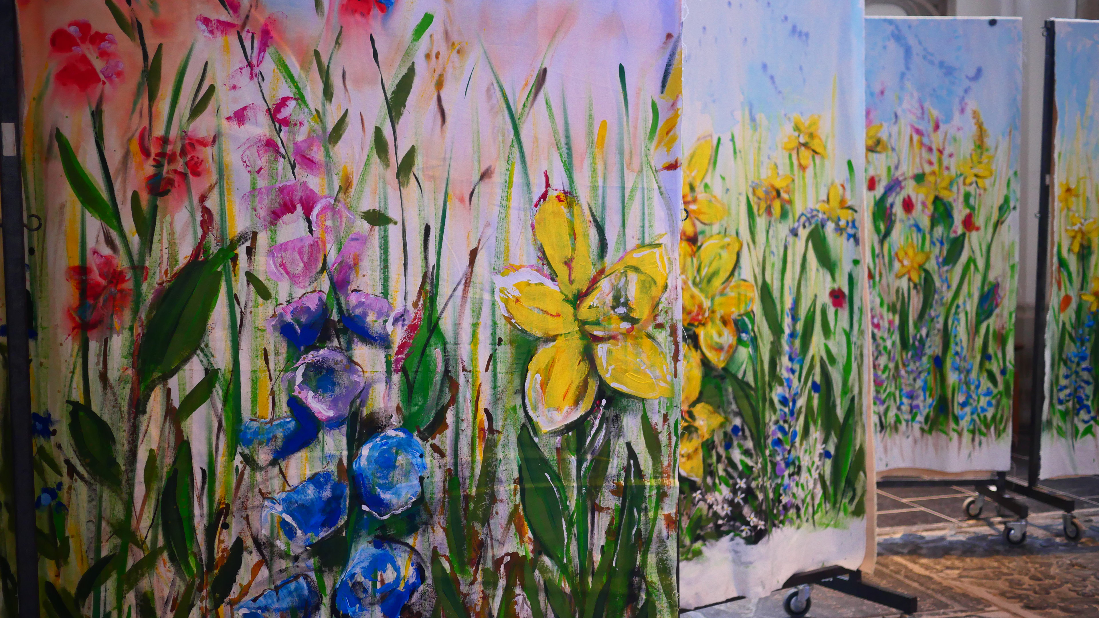 Hier zie je foto's van het portretten panorama (25 meter) en de bloemenzee (25 meter) van voorstelling ‘Op het Puin, en dan nu’.