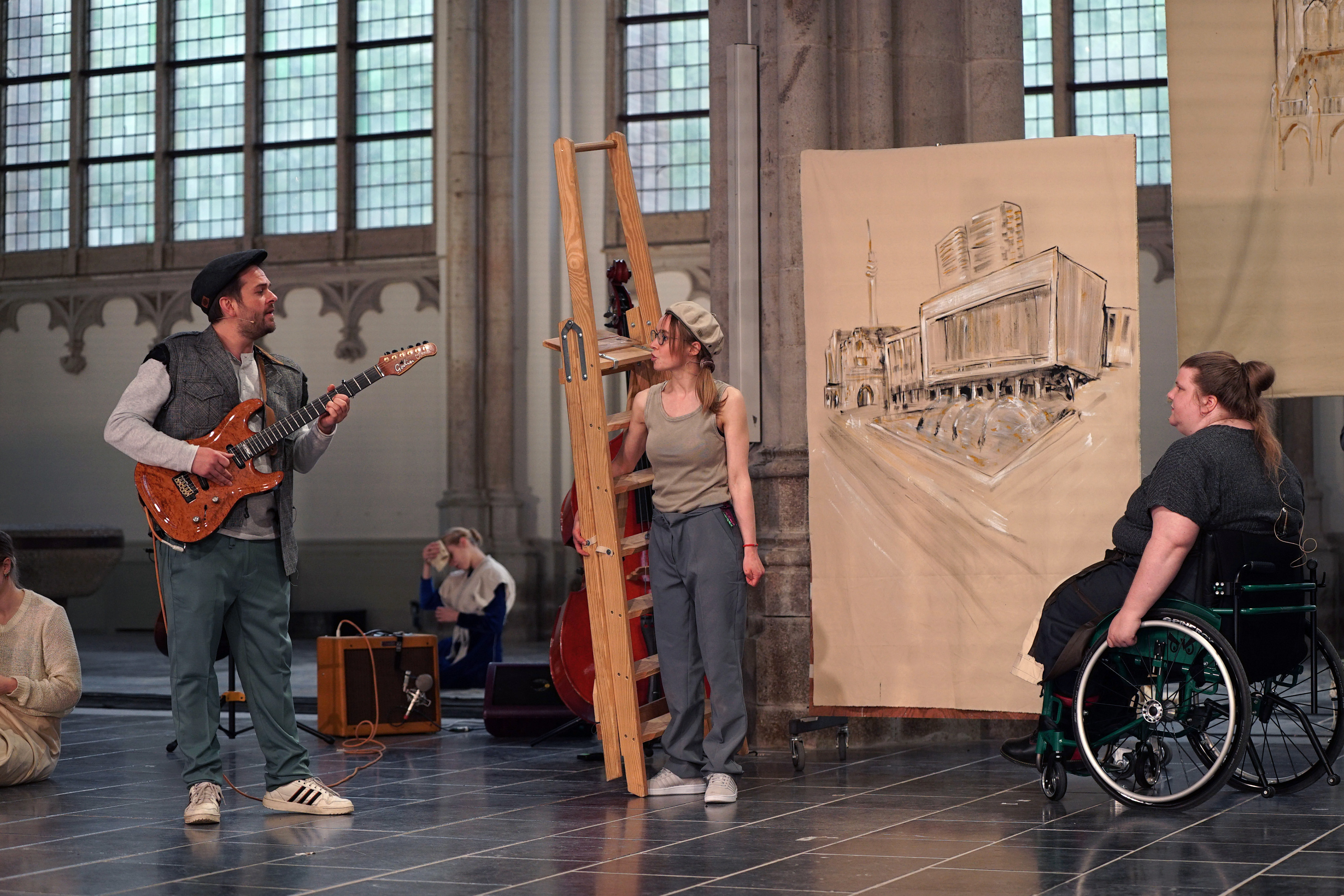 Naast dit panorama van (zelf)portretten bevat het panorama een bloemenzee van 25 meter, geschilderd door enthousiaste schilders onder leiding van Mirthe. Al deze elementen samen vormen het decor van de voorstelling Op het puin, en dan nu.